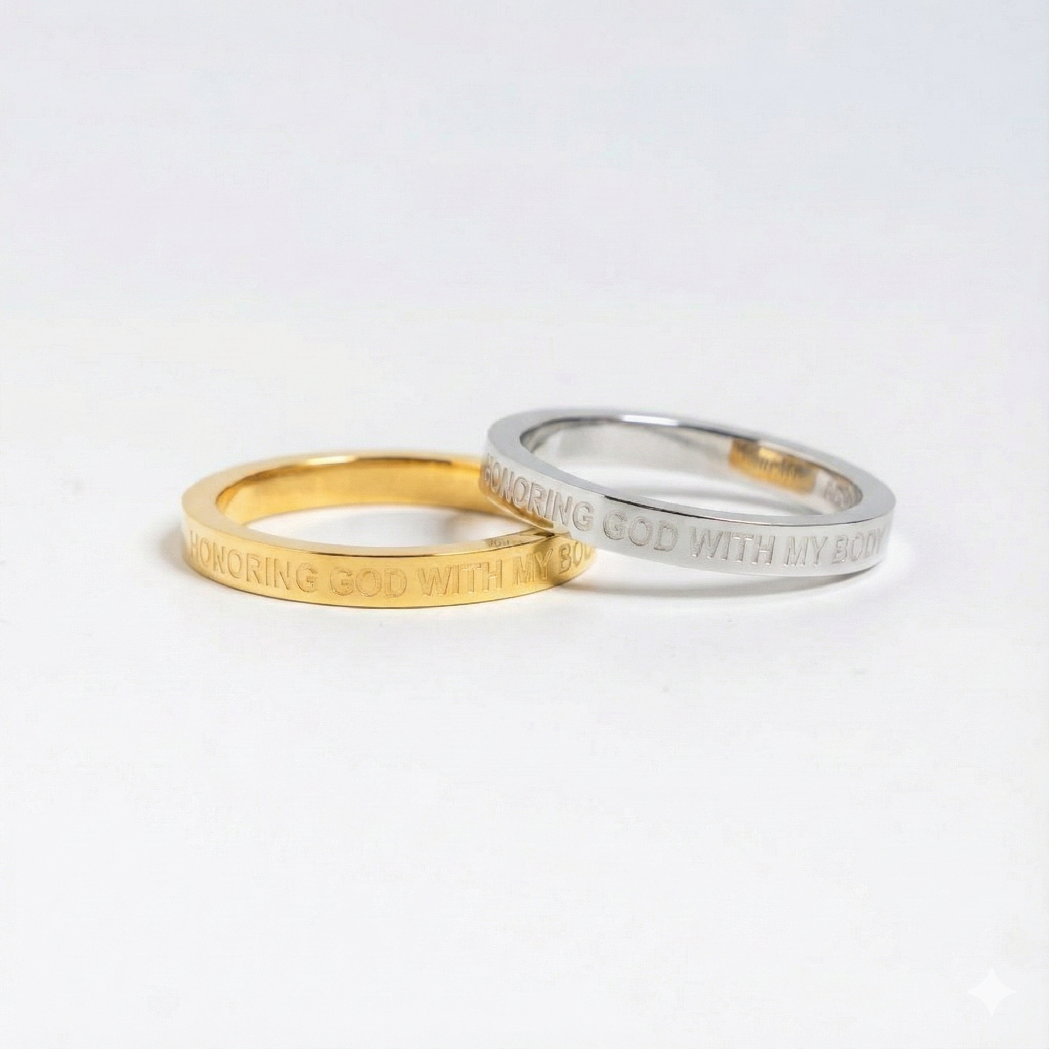 The Honoring God With My Body ring is a subtle reminder inspired by 1st Corinthians 6:19-20 that you are not your own, but was bought with a price therefore honor God with your body. When wearing this ring you will constantly be reminded to keep honoring God with your body.